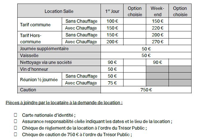 Renseignements et réservations à la mairie : par mail ou par téléphone.